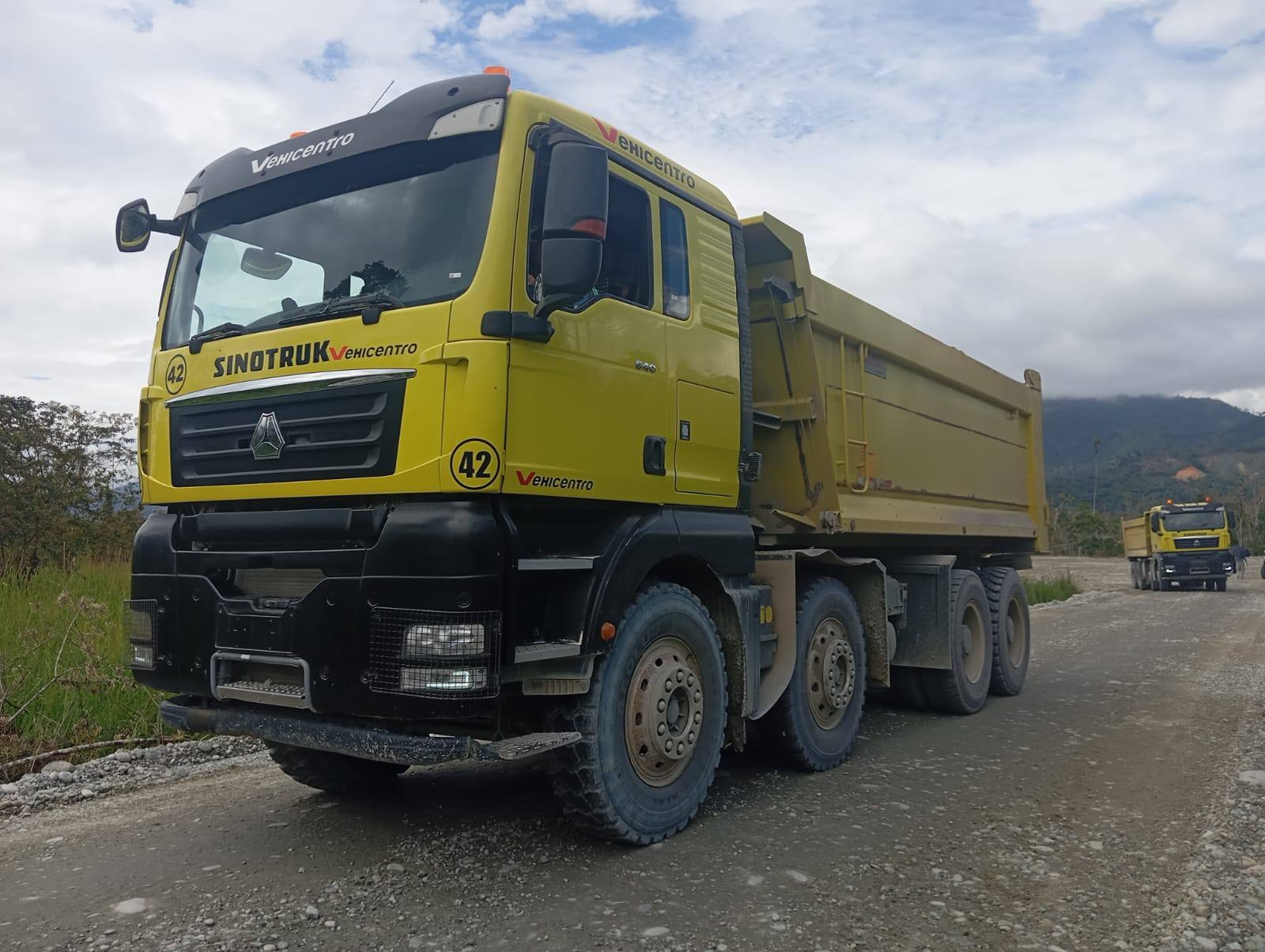 • Las volquetas de cuatro ejes que transportan material pétreo no utilizan carpas ni mantienen seguros en sus compuertas, lo que ocasiona derrames sobre la vía y representa un riesgo para la seguridad vial y el medio ambiente.