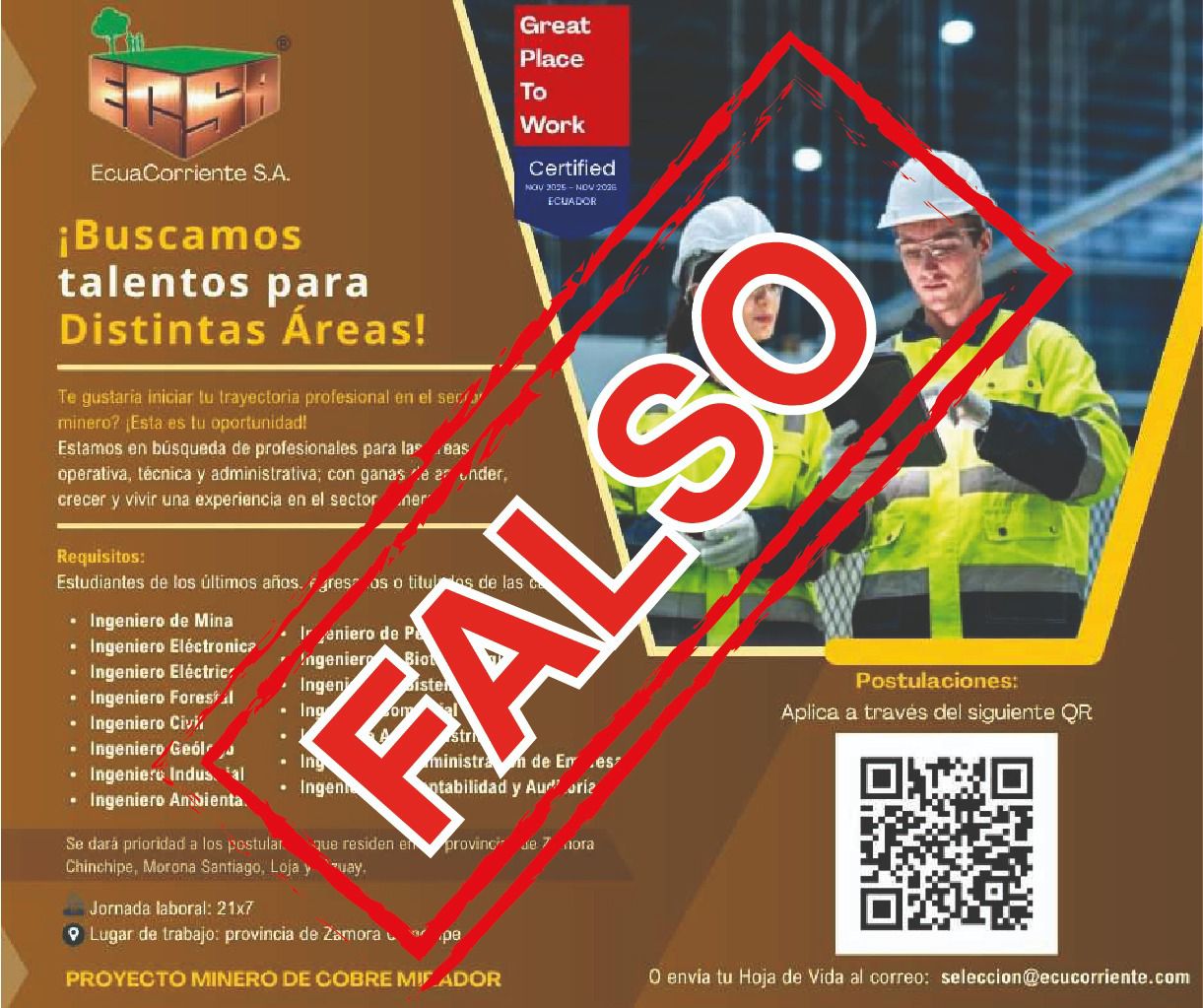 “Este reconocimiento reafirma nuestro compromiso con el país. En EcuaCorriente trabajamos cada día para generar desarrollo, oportunidades y bienestar para las comunidades, siempre bajo un enfoque de sostenibilidad”, destacó Jeimi Chiluisa Palacios, coordinadora de Comunicación de ECSA.