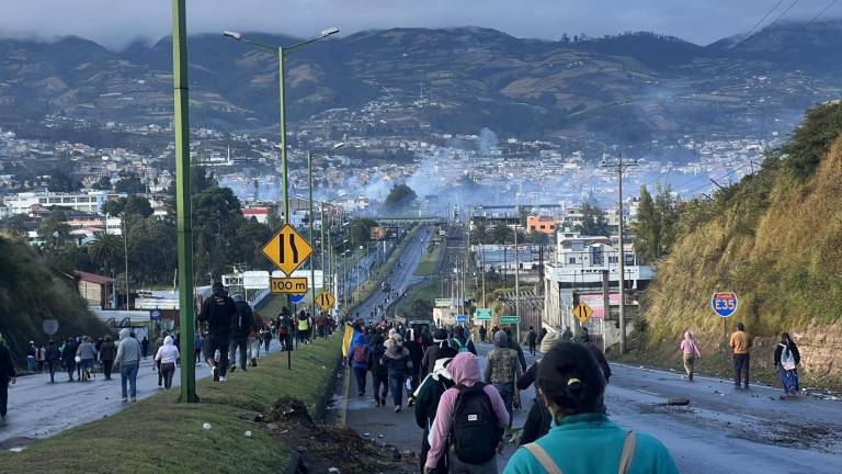 En Otavalo se cumplen siete horas de enfrentamientos entre la fuerza pública y los manifestantes este martes.