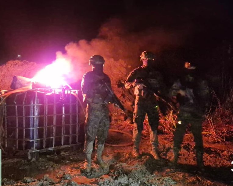 Operación militar destruye maquinaria y combustible usados en minería ilegal