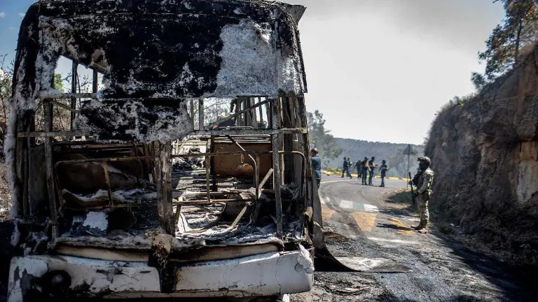 Sujetos armados bloquearon con autos y camiones incendiados distintas vías de Jalisco. Por la tarde se veían restos de vehículos calcinados y otros aún en llamas en varias carreteras, en medio del sonido de las sirenas de las fuerzas de seguridad.